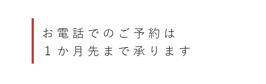 営業時間中(12:30-15:00及び18:00-21:00)は、ご来店中のお客様の対応を優先させていただくため、電話対応が難しいことがあります。ご理解をお願いいたします。